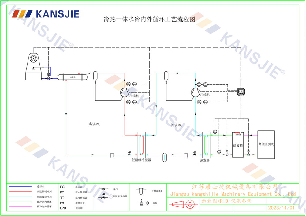 5)觀察並記錄設備運行(háng)狀態(tài),包括製冷劑的壓力(lì)、溫度、流(liú)量等參數;一般就是做冷熱(rè)一體的溫控在-70℃-+150℃