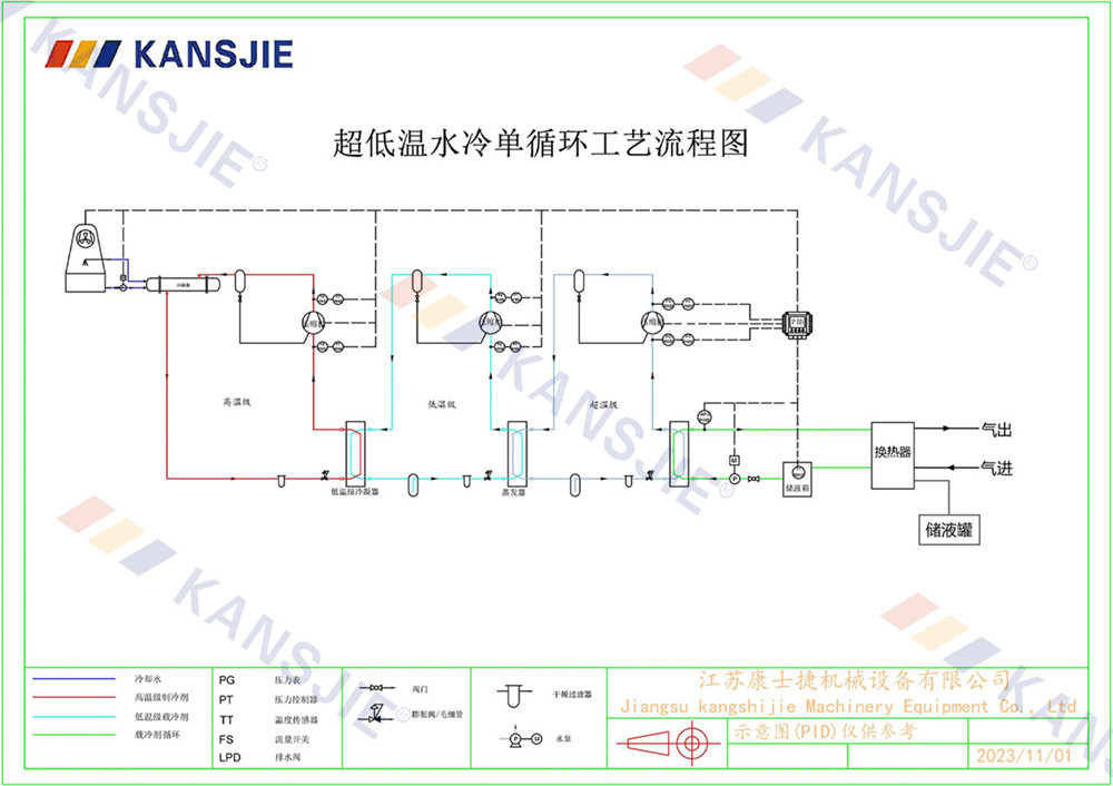 冷(lěng)水機采用先進的製冷技術能夠實現高效、穩定的製冷效果,為冷凝回收工藝提供所需的低溫冷源。